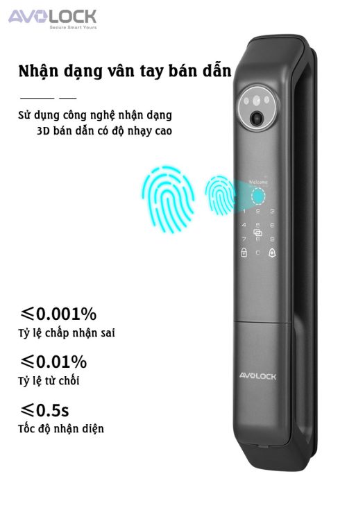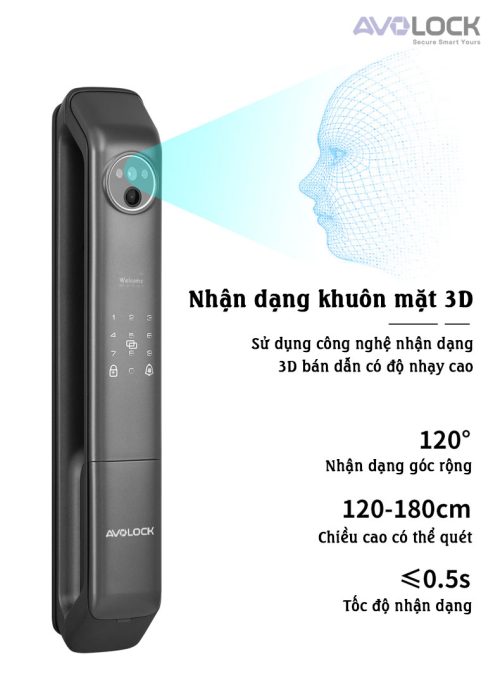 Avolock AL 80FRVT được trang bị công nghệ nhận dạng khuôn mặt 3D bán dẫn hiện đại, giúp mở khóa nhanh và chính xác trong nhiều điều kiện khác nhau: