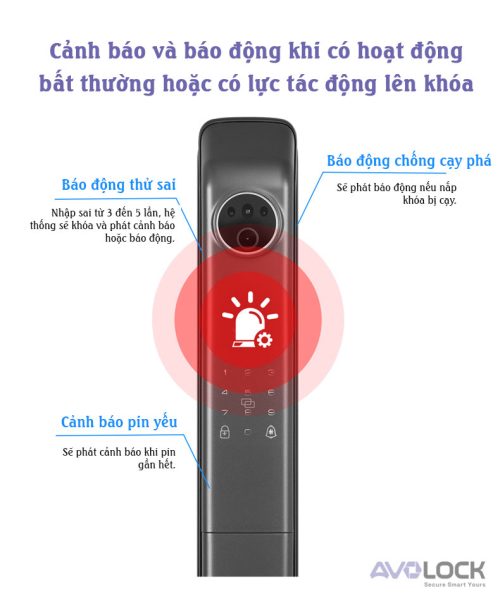 Avolock AL 80FRVT được trang bị nhiều tính năng cảnh báo giúp phát hiện sớm các rủi ro an ninh: